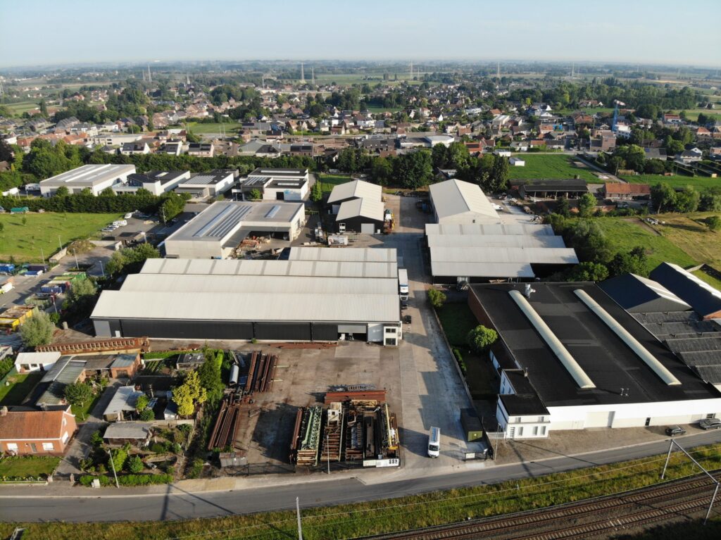 Compleet vernieuwd (dak-& wand met lichtstraat – geïsoleerd, gepolierde beton) met rolbruggen – halkranen en electrische hoogspanningscabine -voorzien van brede electrische sectionaaldeuren-binnenhoogte 6 meter